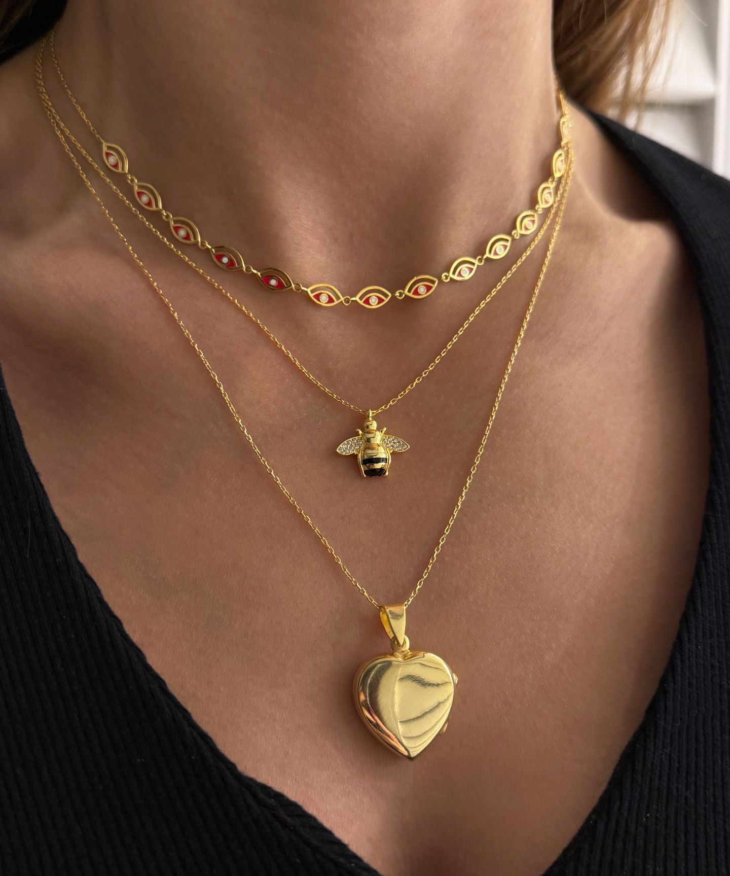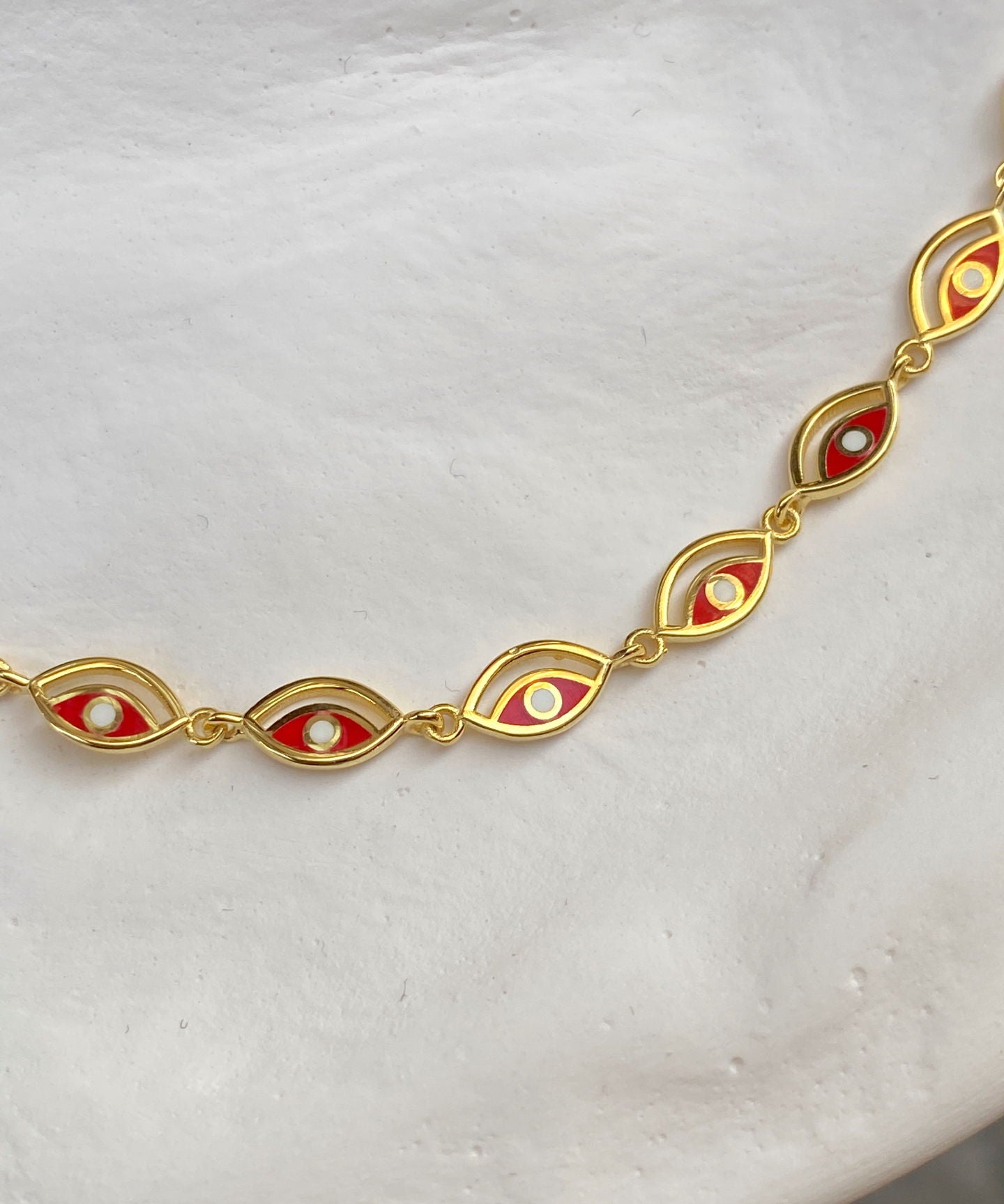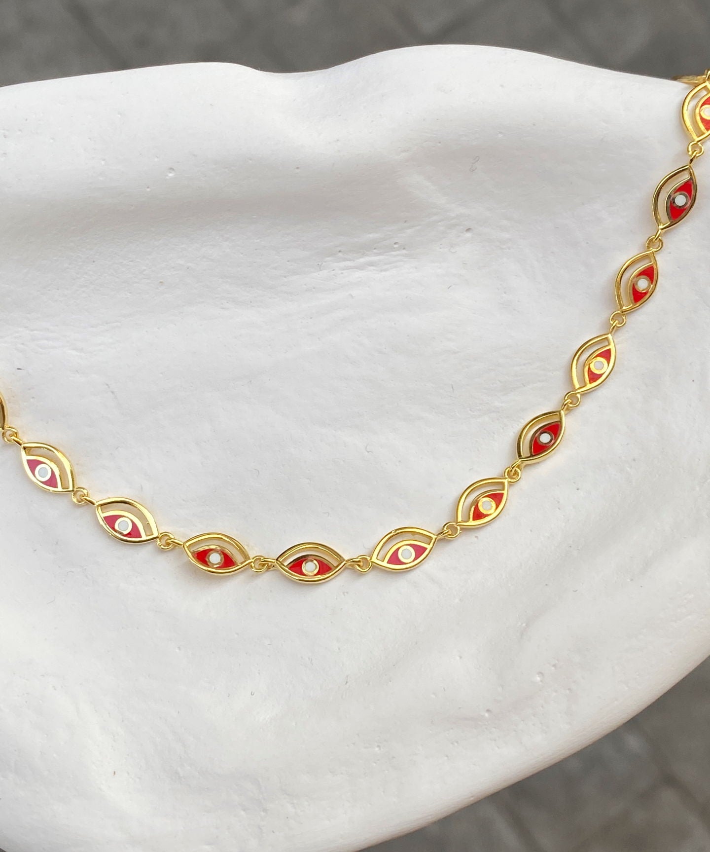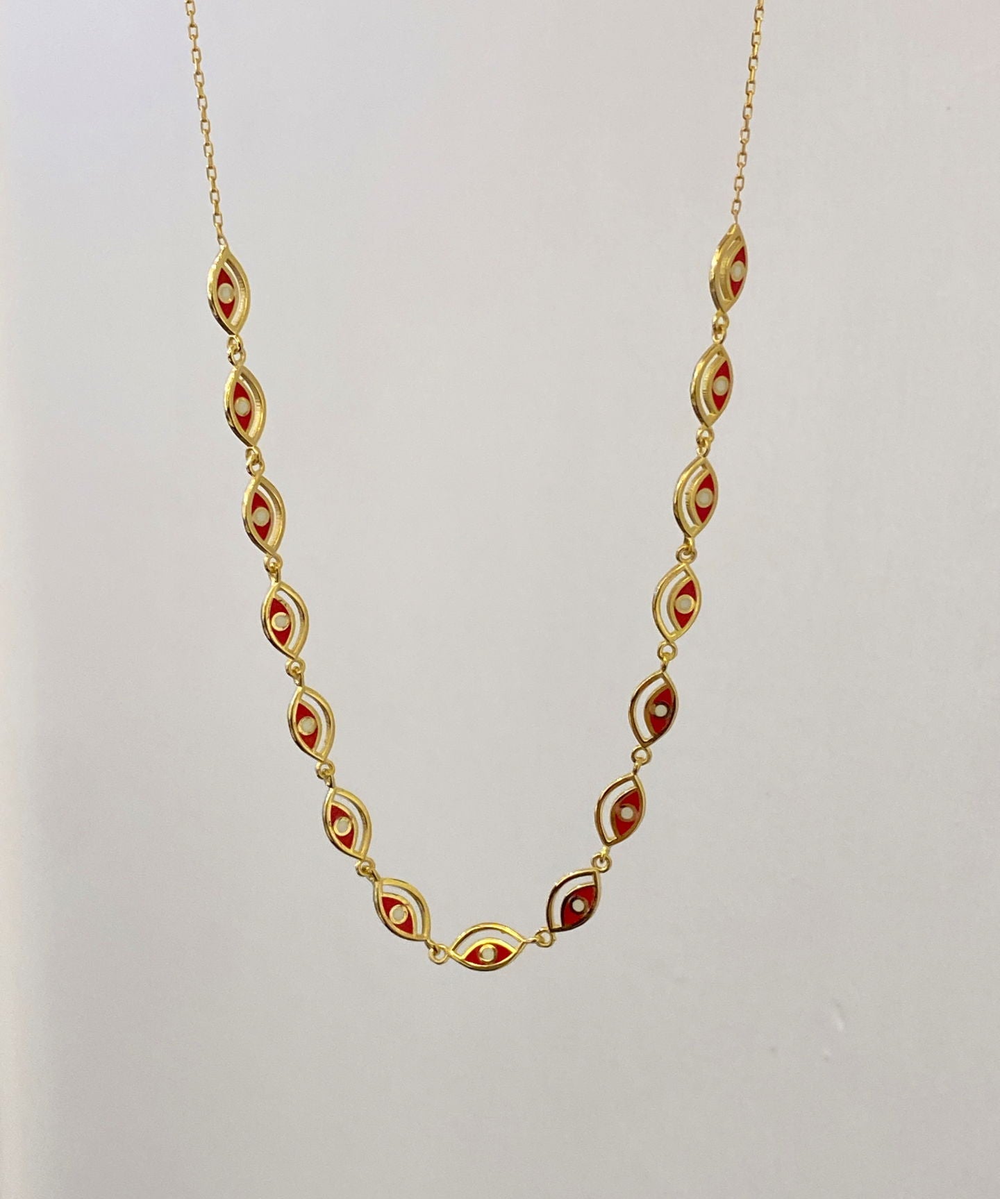925 Silver | Red Enamel Eye Charm Necklace