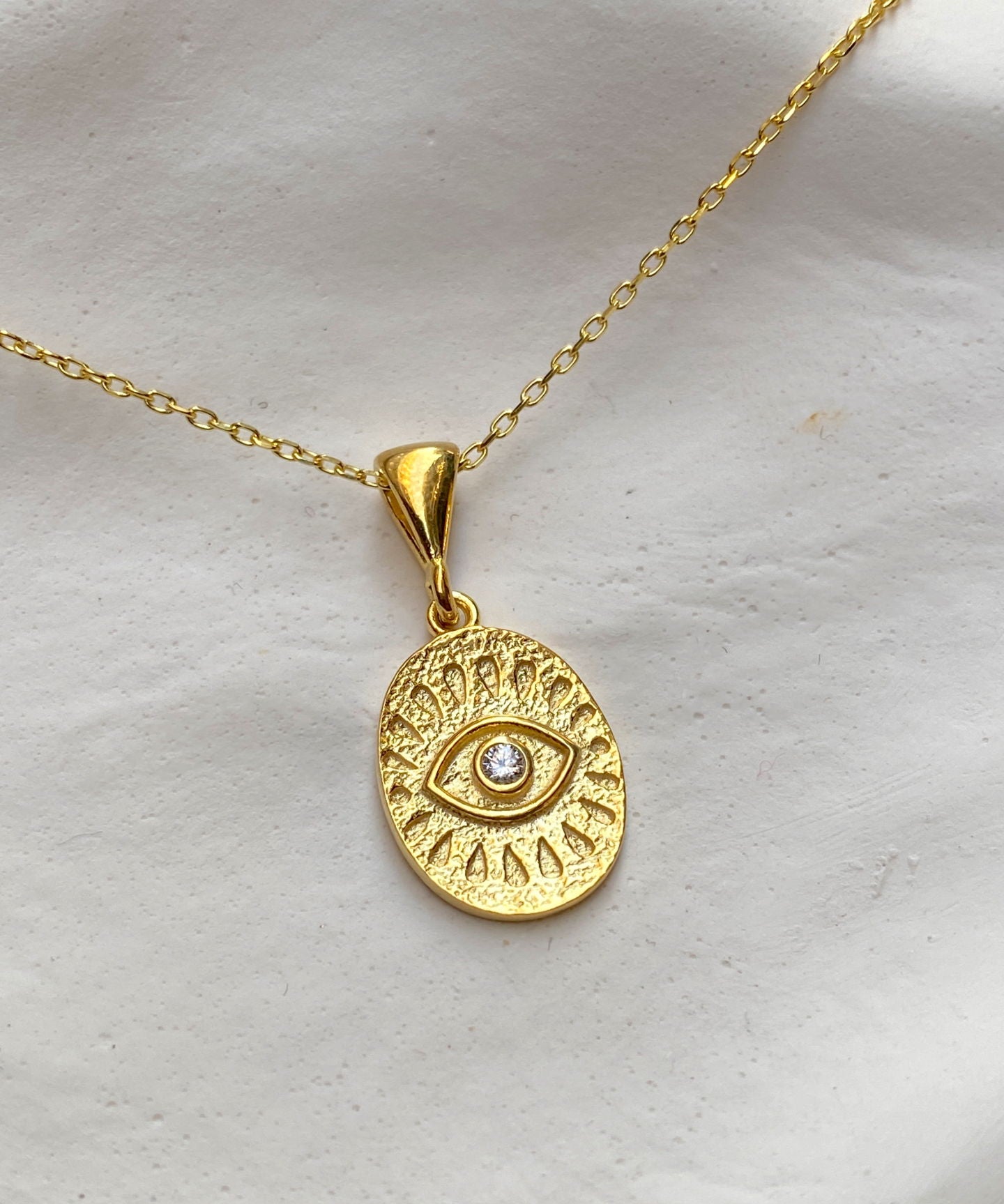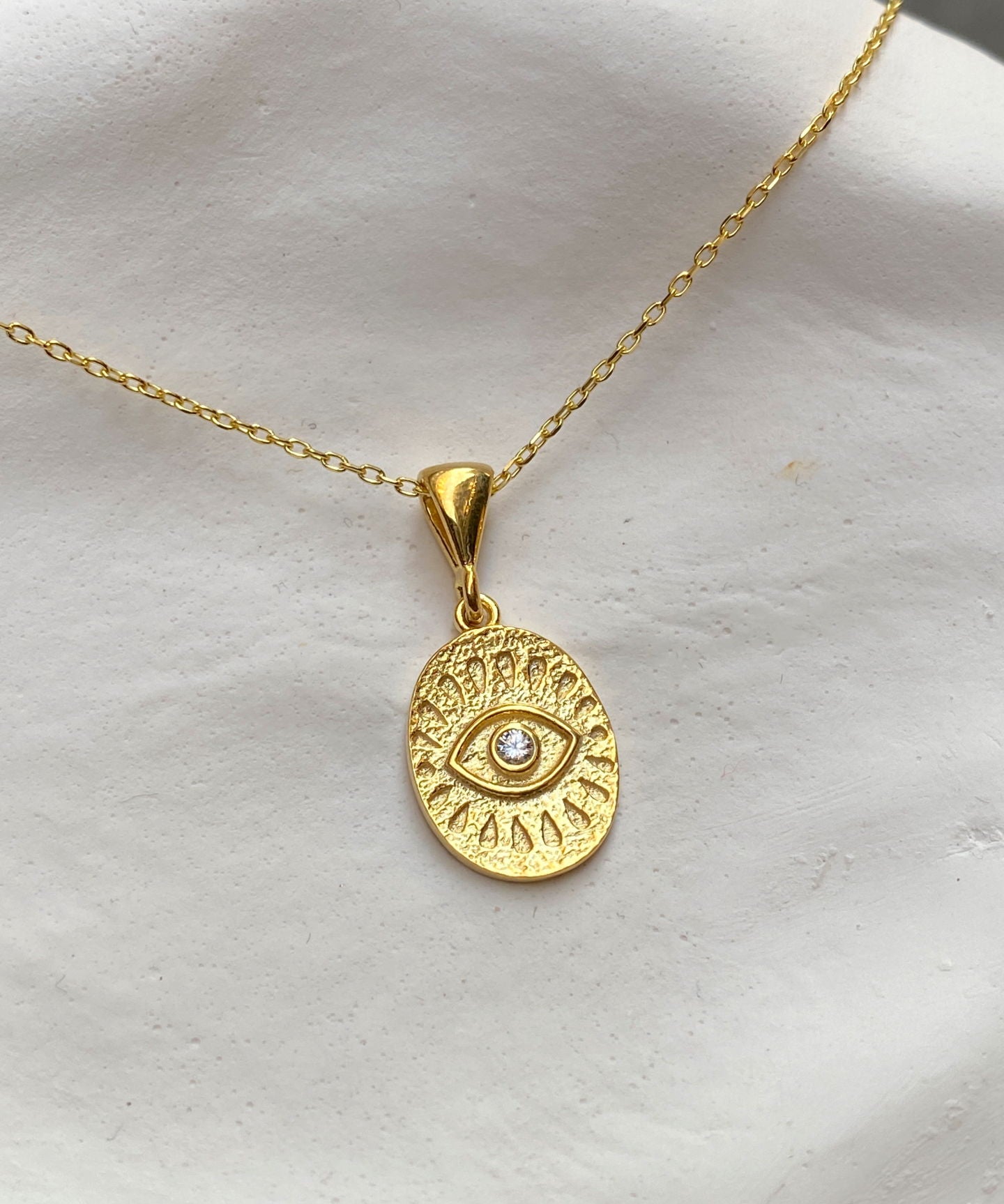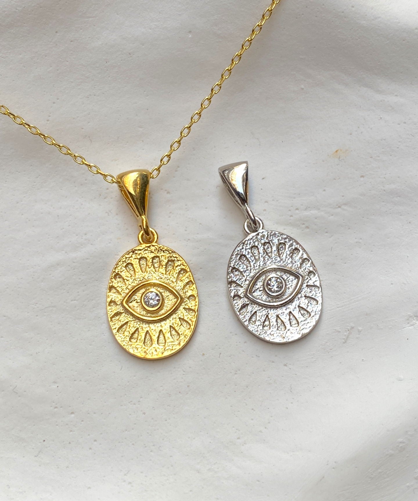 925 Silver | Oval Eye Medallion Necklace with Stone Detail