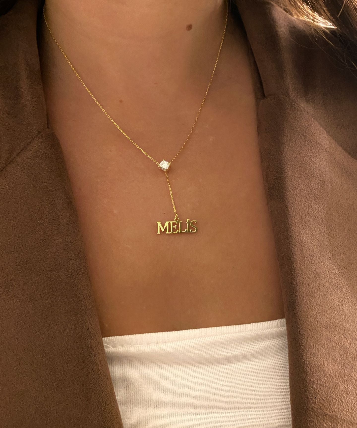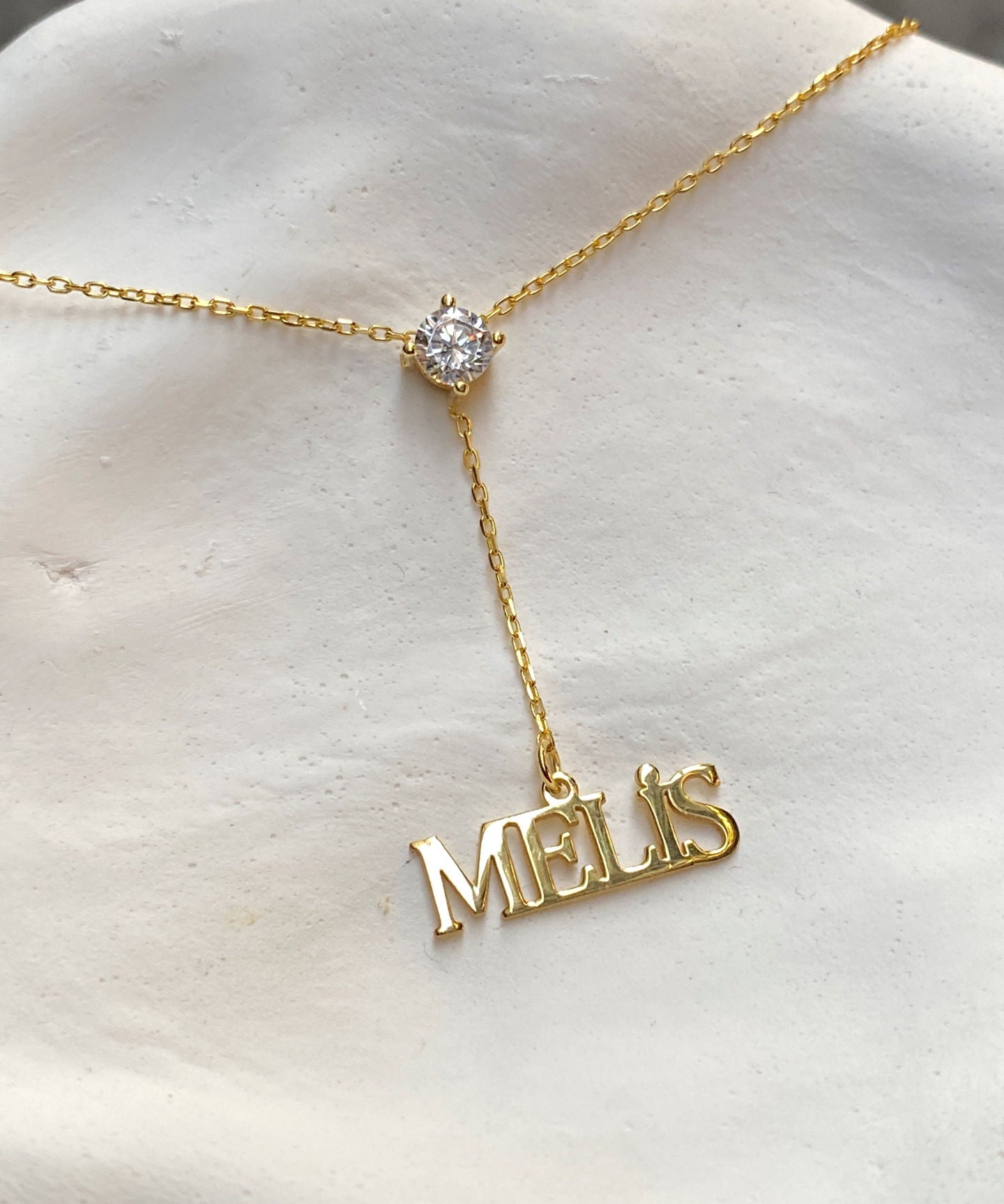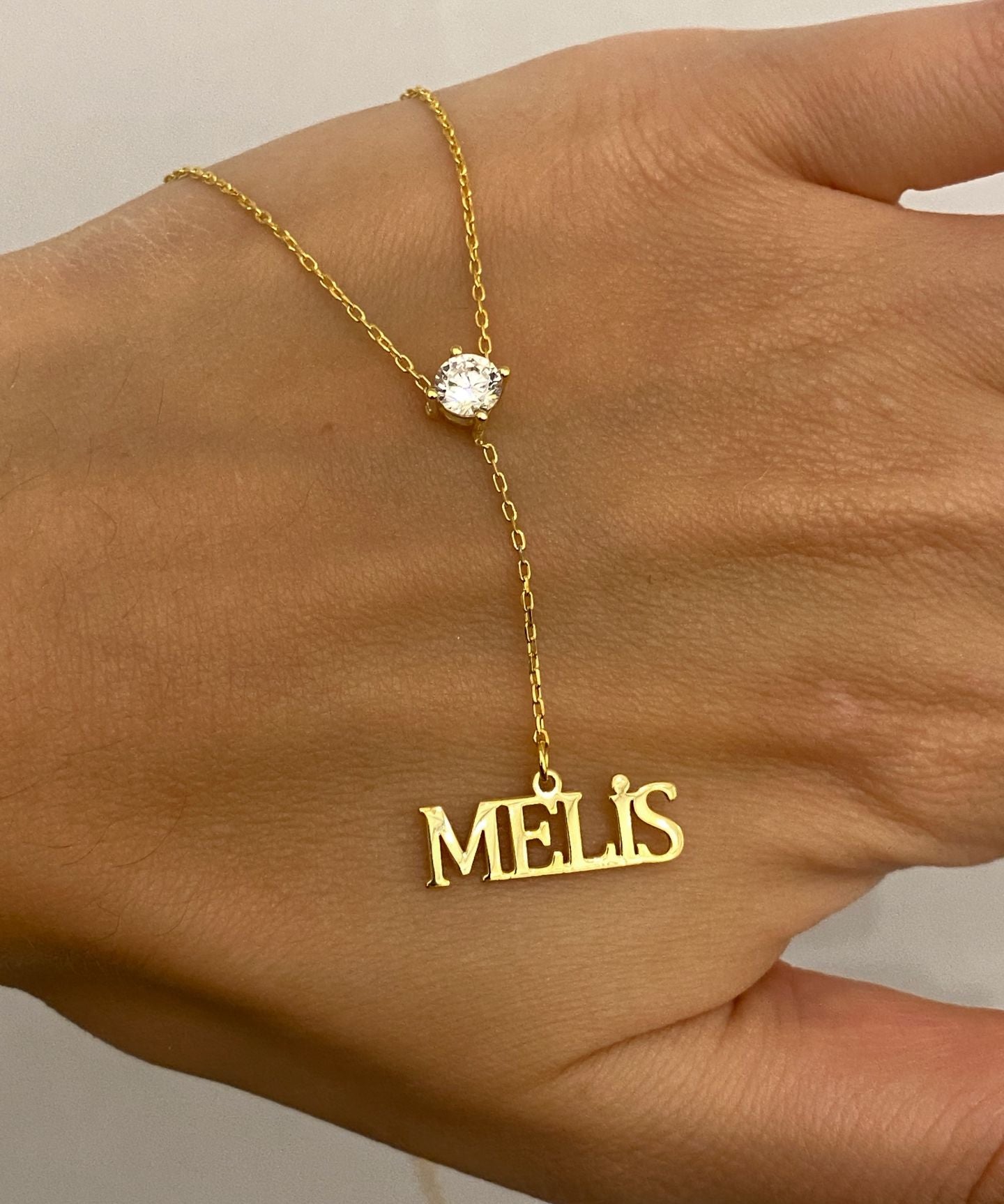 925 Silver | Custom Minimal Y Necklace with White Stone Accent