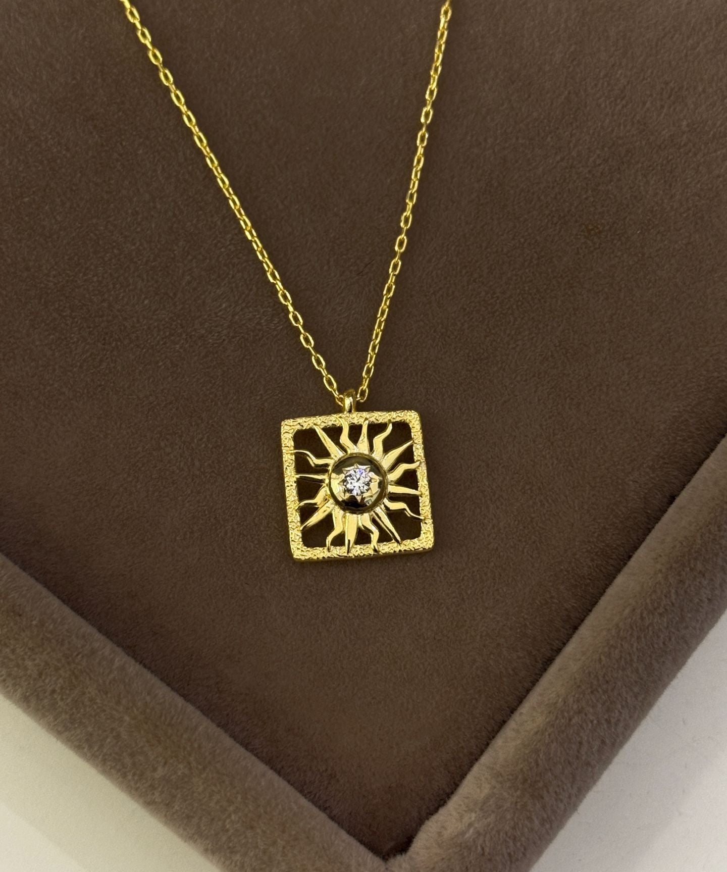 925 Silver | Square Medallion Necklace with Sun and Stone Detail