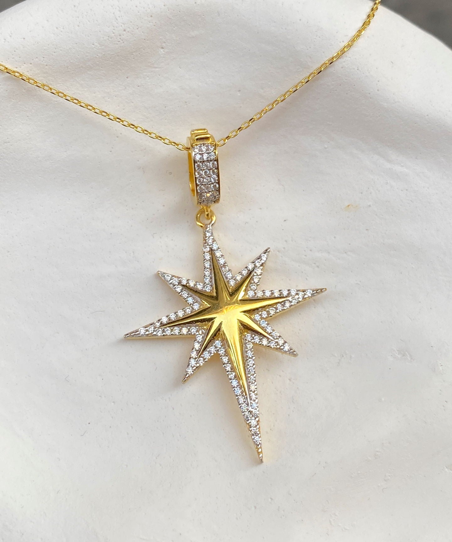 925 Silver | Large North Star Necklace with Stone Detail