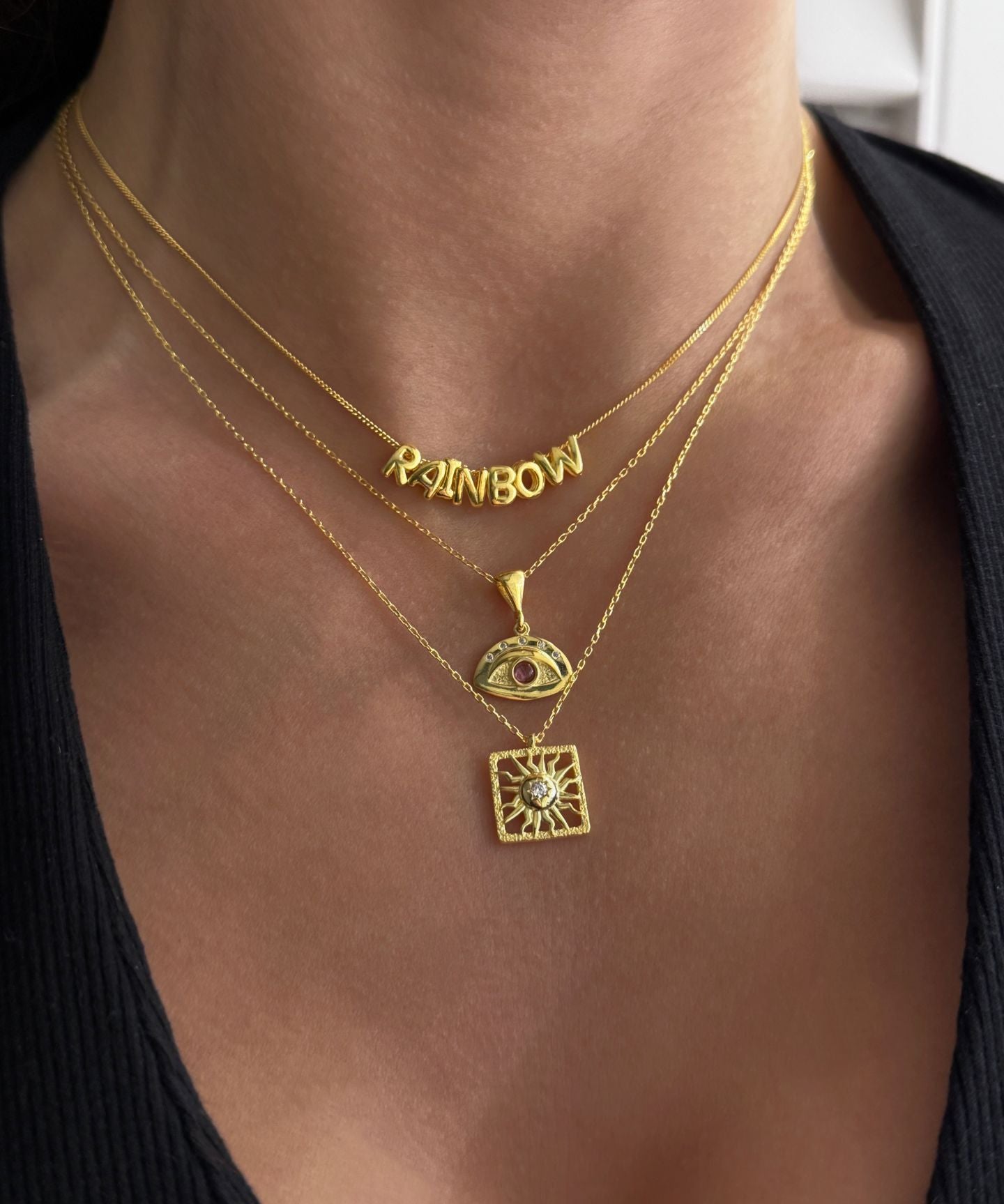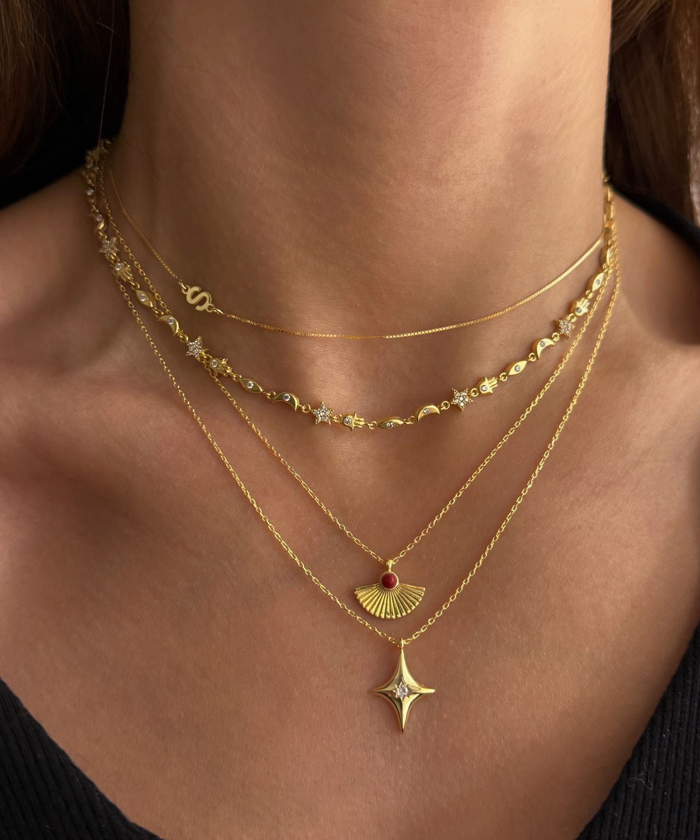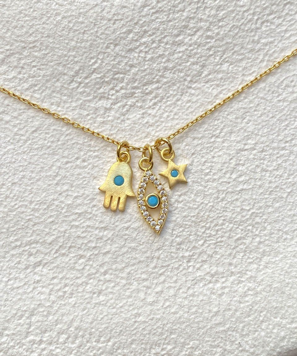 925 Silver | Manifest Necklace with Hamsa, Star, Moon & Eye Charms