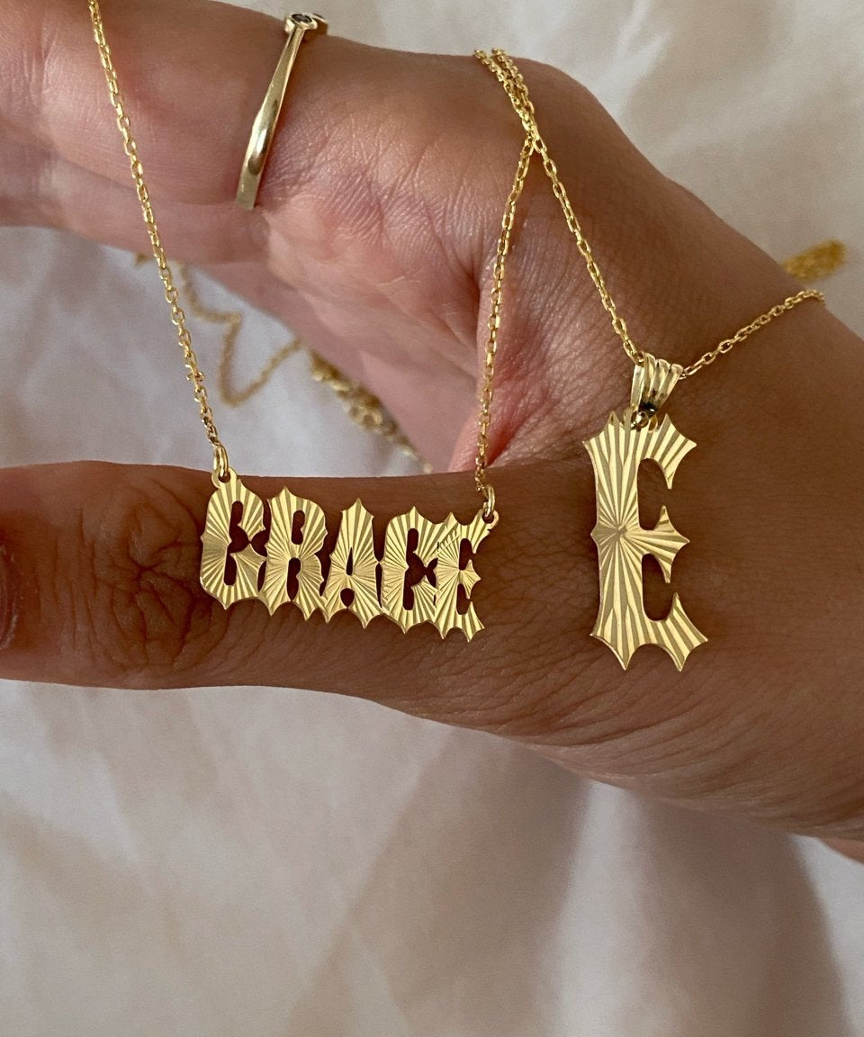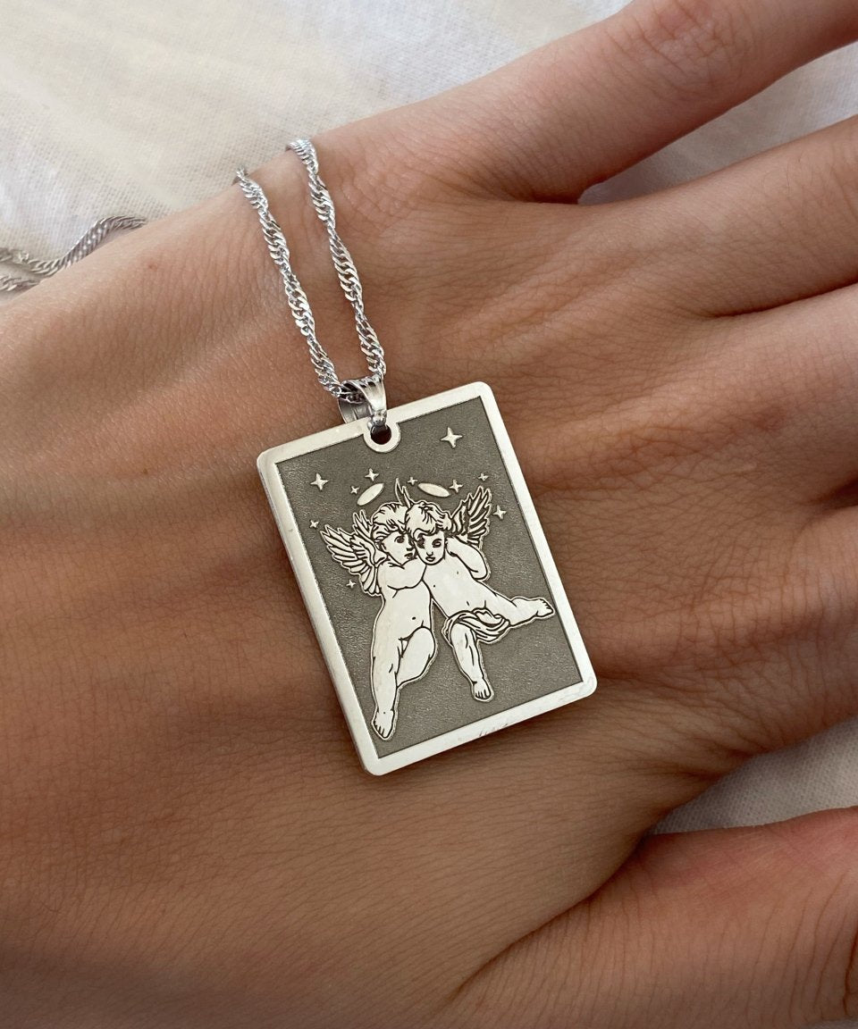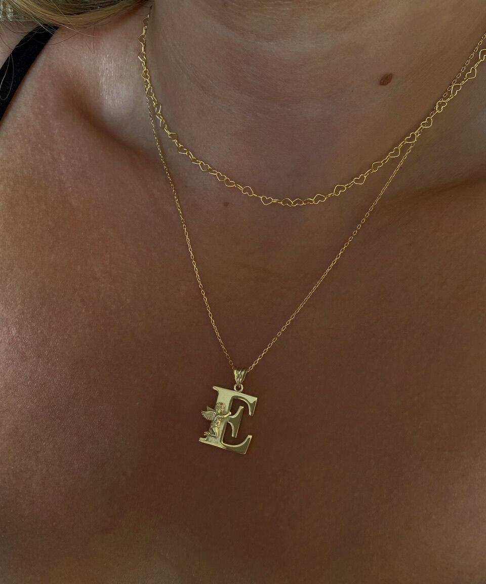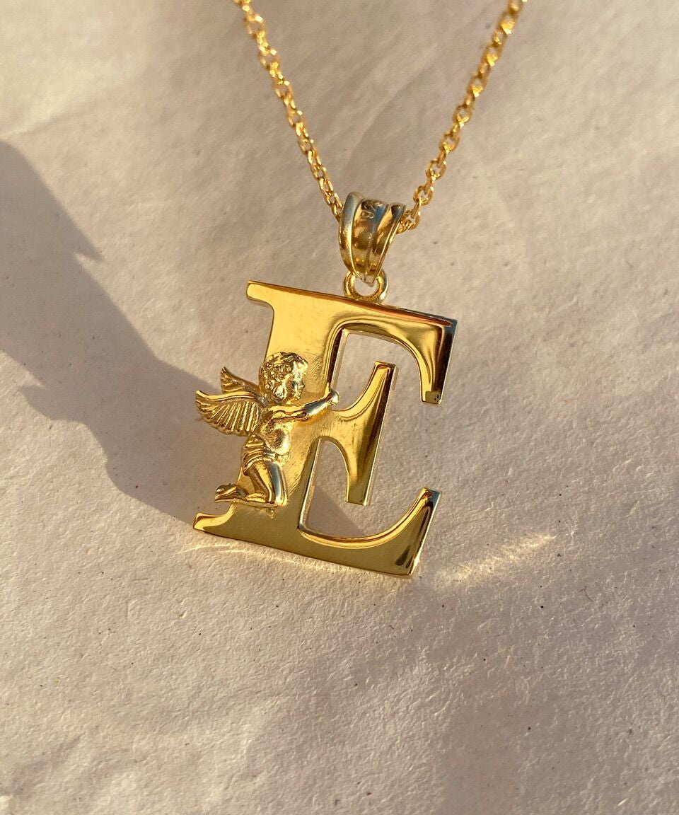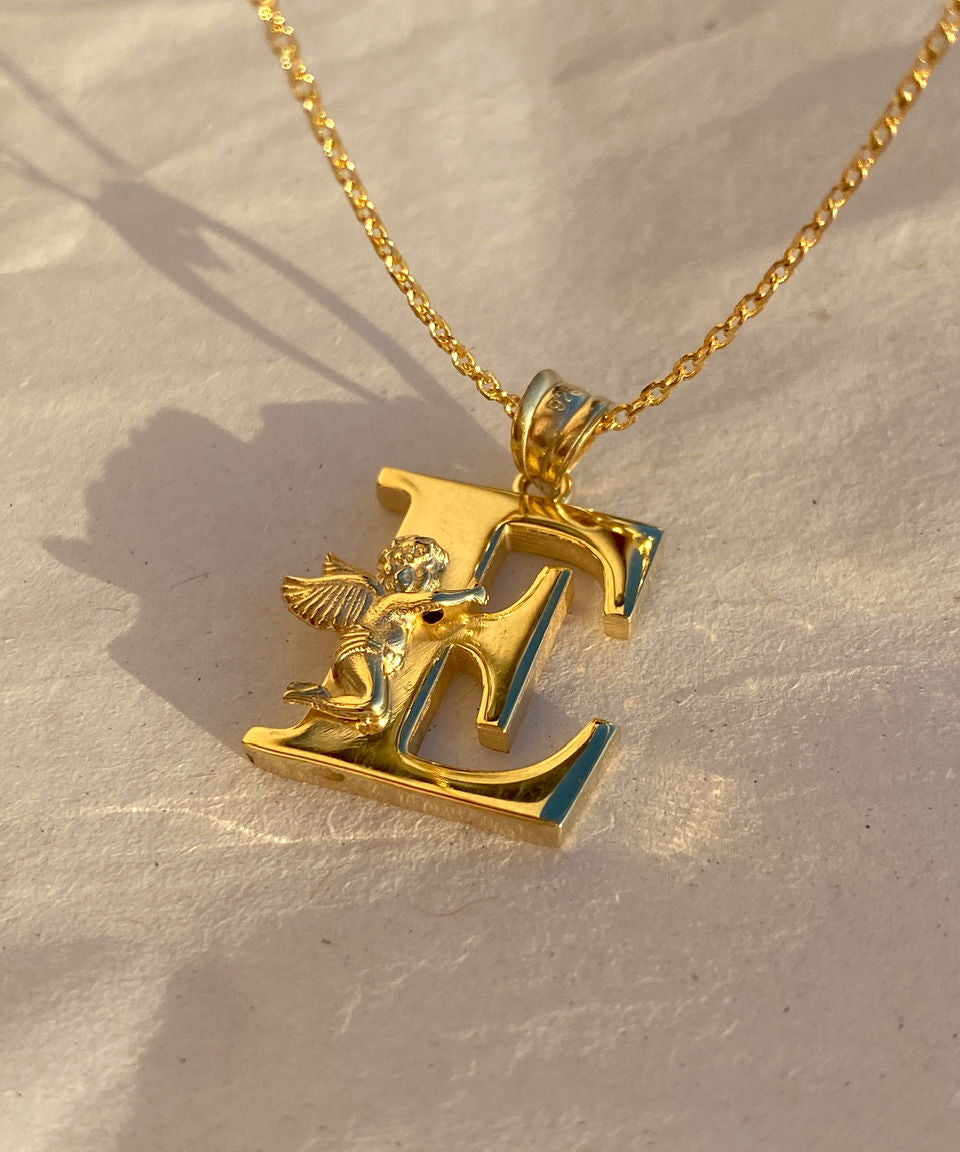 925 Silver | Unisex Angel Detail 3D Letter Necklace