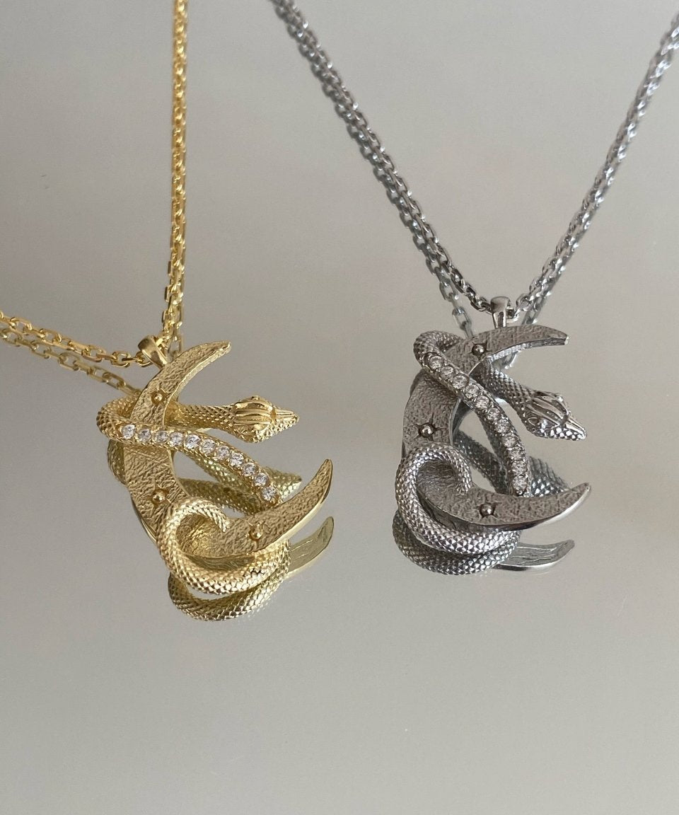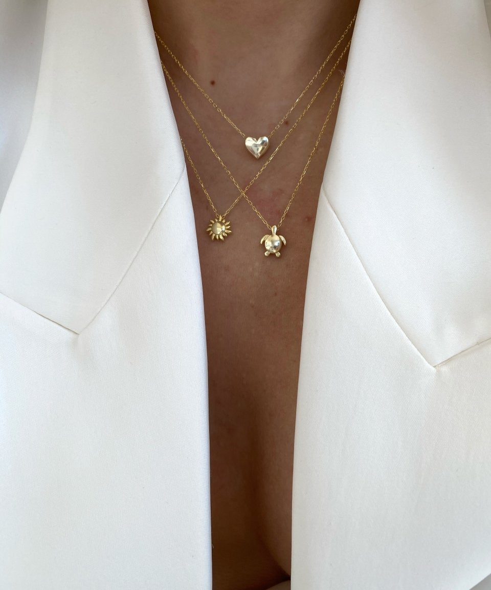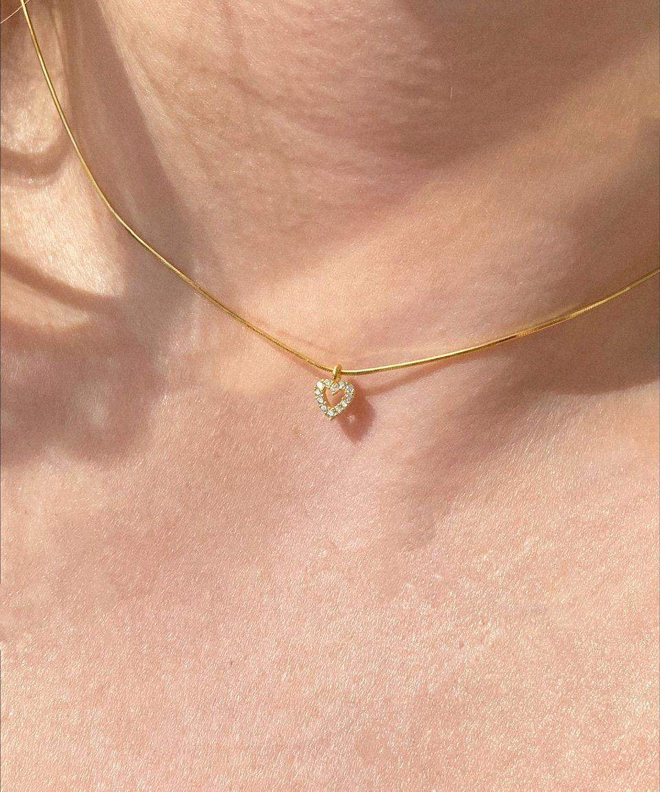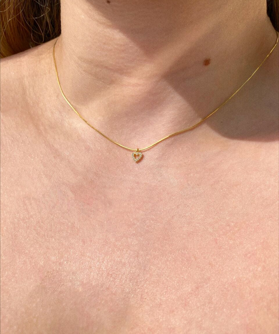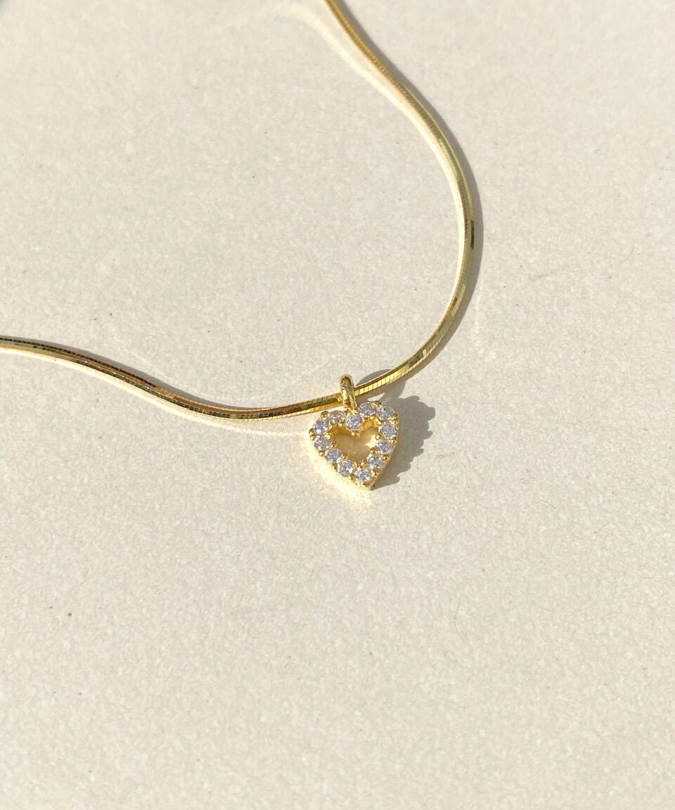 925 Silver | Snake Chain Mini Heart Necklace with Stones