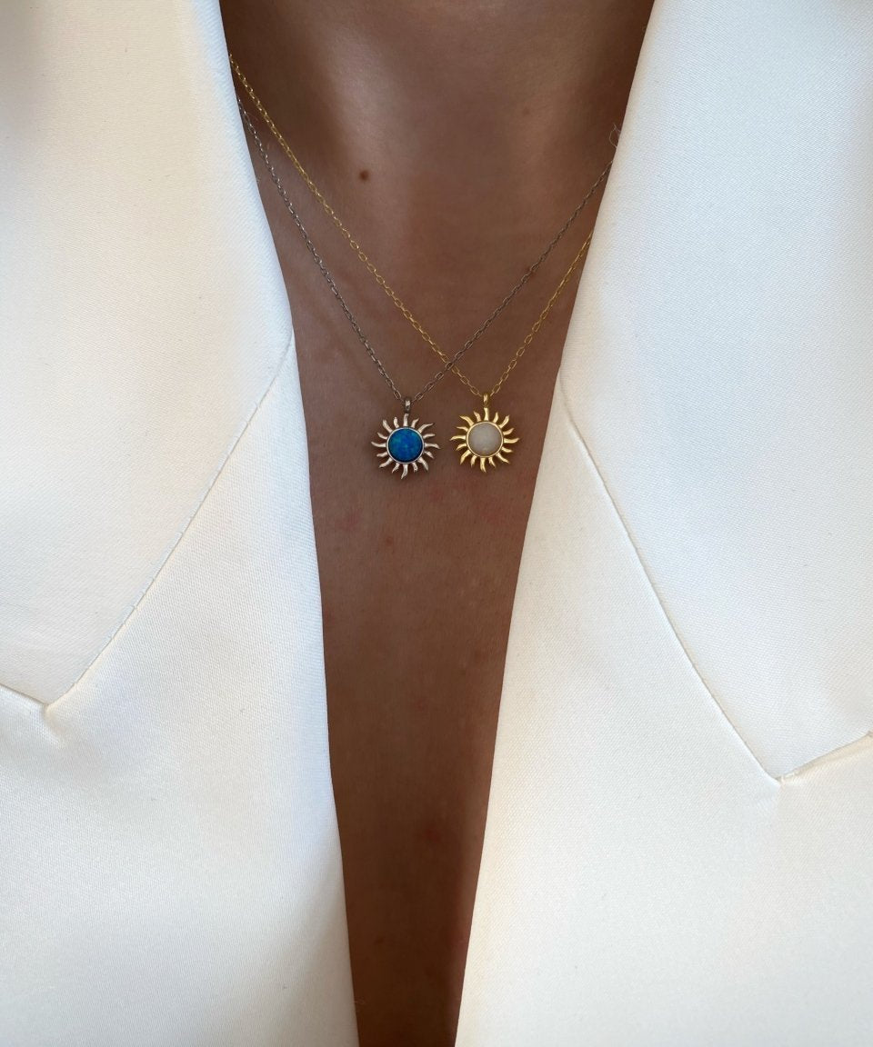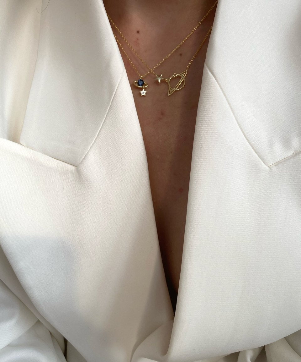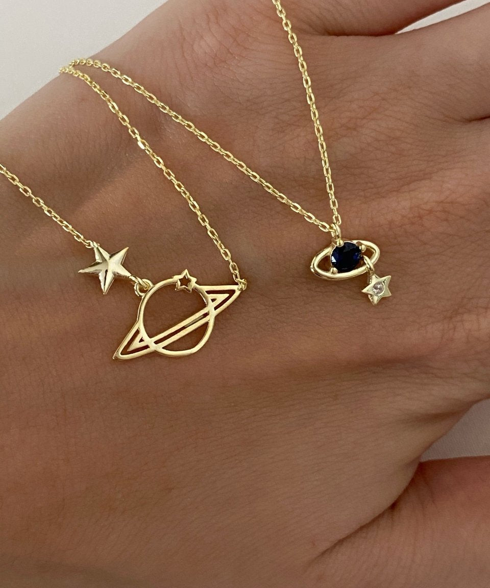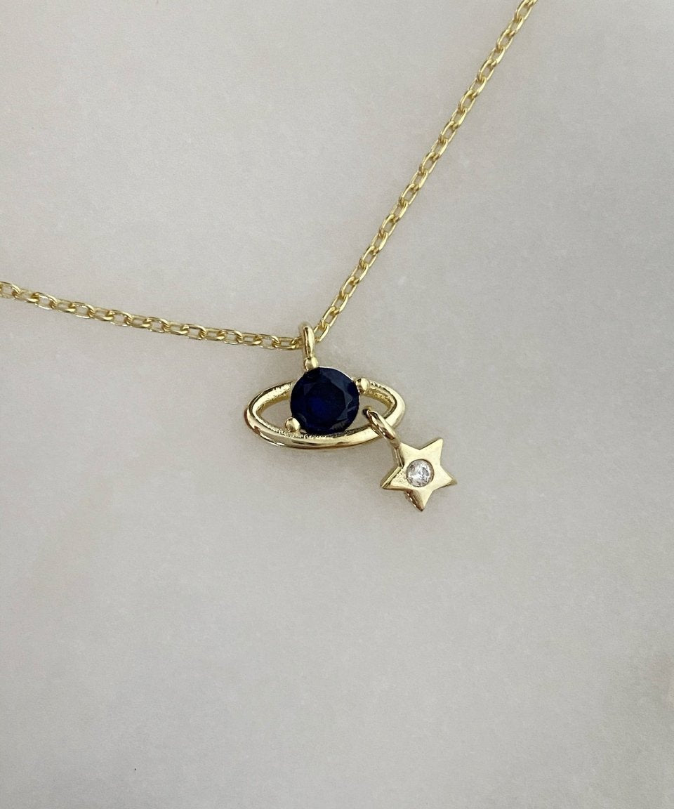 925 Silver | Mini Saturn Necklace with Dark Blue Stone
