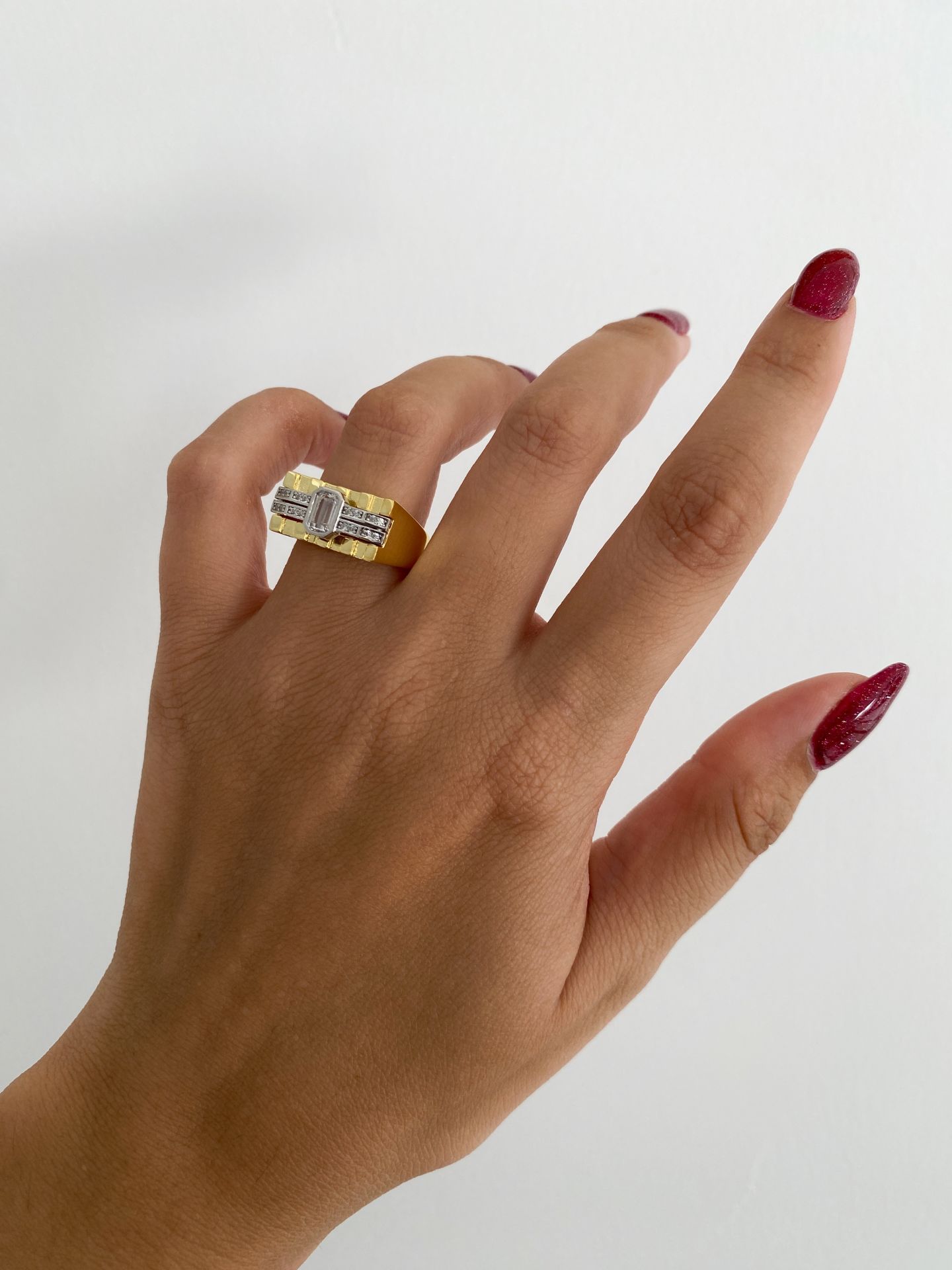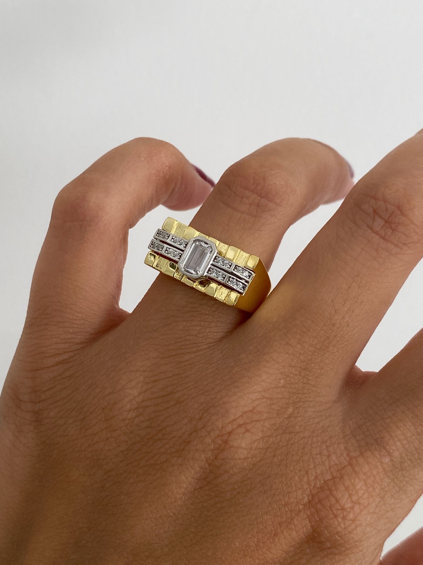 925 Silver | Thick Rectangle Ring with Baguette and Zircon Stones