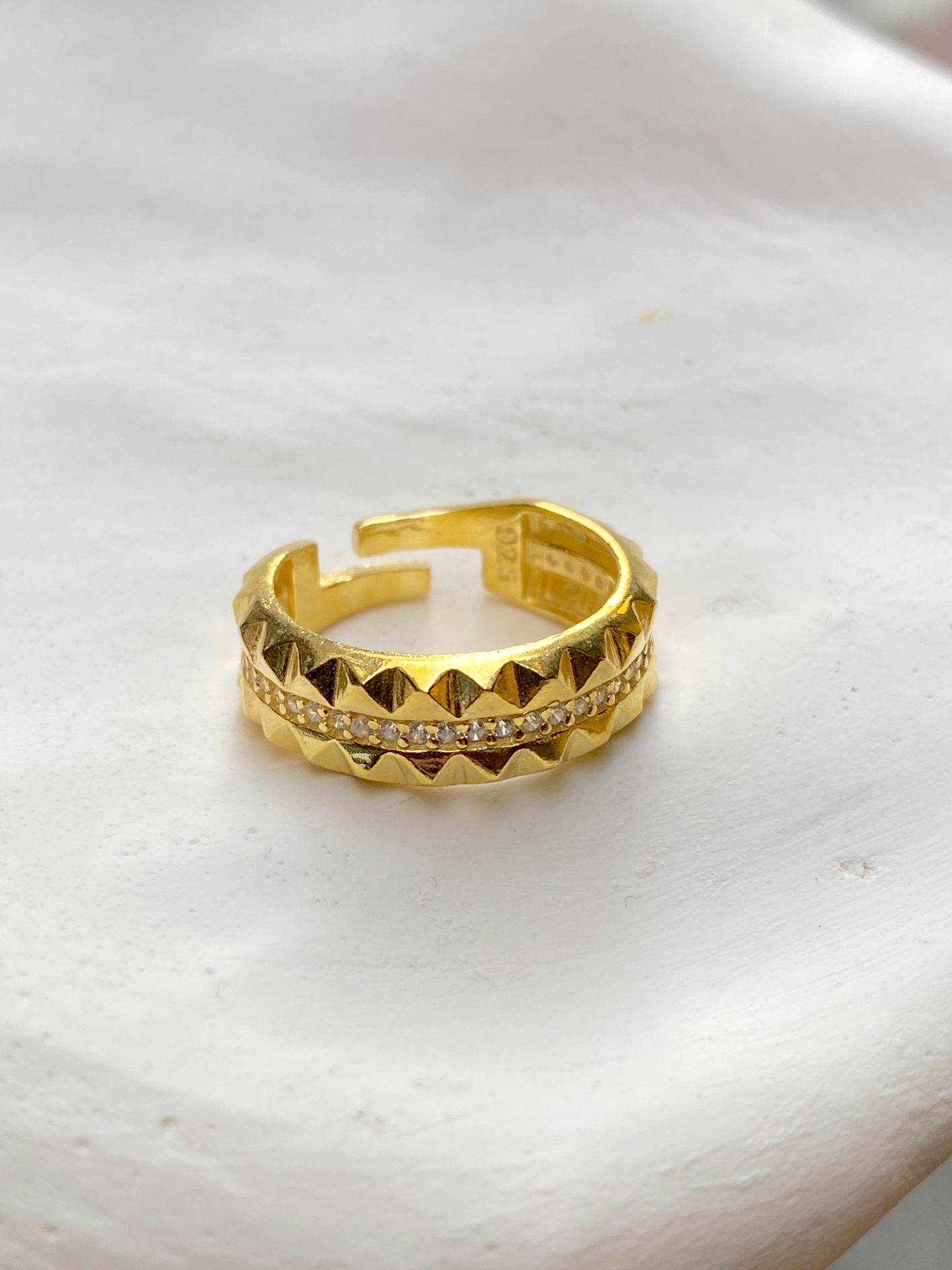 925 Silver | Vintage Style Ring with Center Stone Stripe