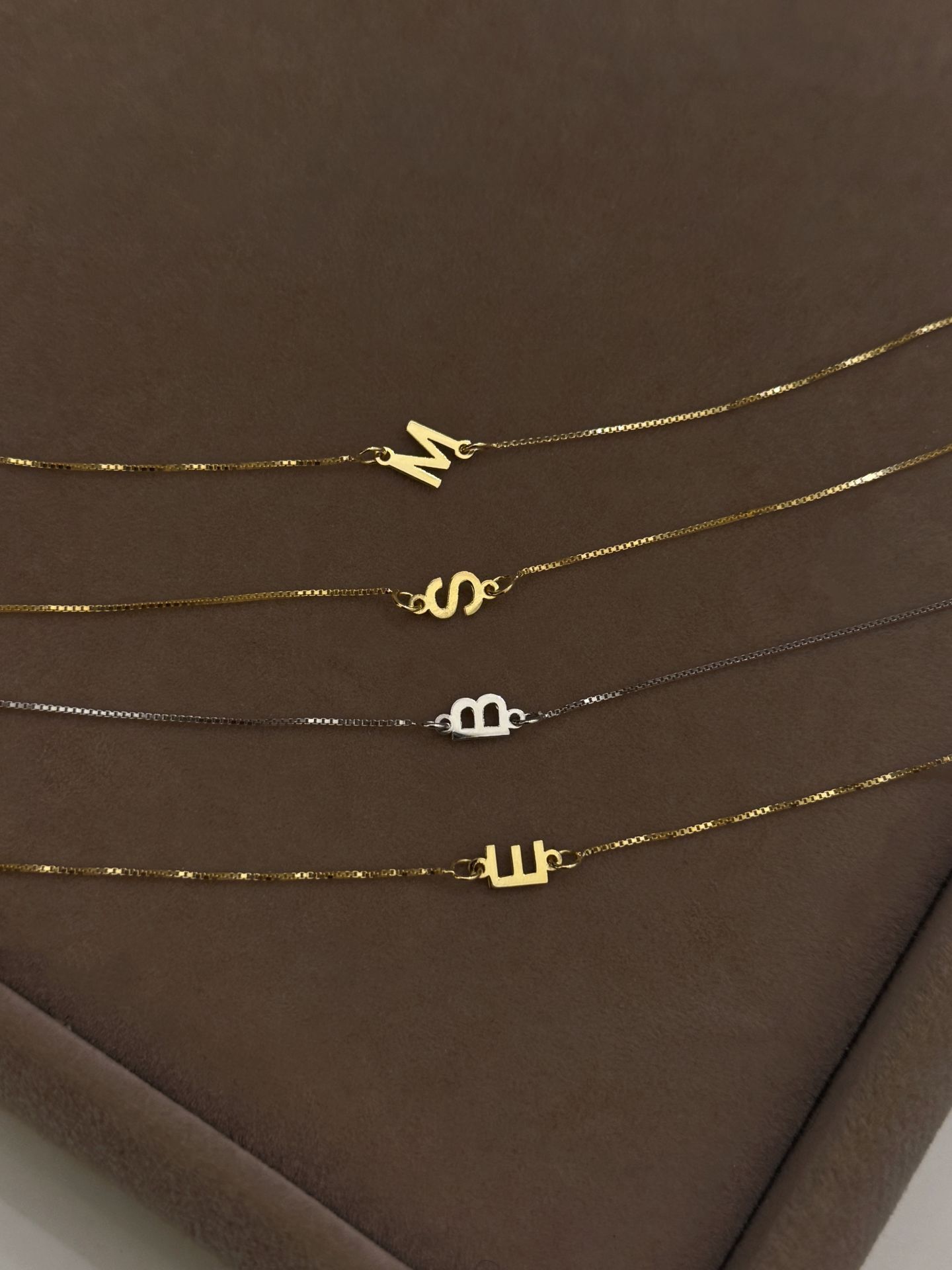 Crafted from solid 14K gold, this delicate box chain necklace sits gracefully along the collarbone, featuring a customizable letter pendant that reflects your unique story. Each piece is made to order with meticulous attention to detail — a timeless keepsake that blends personal meaning with understated luxury.