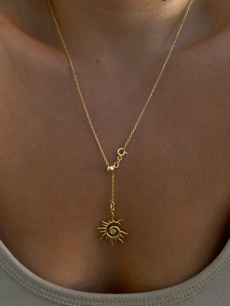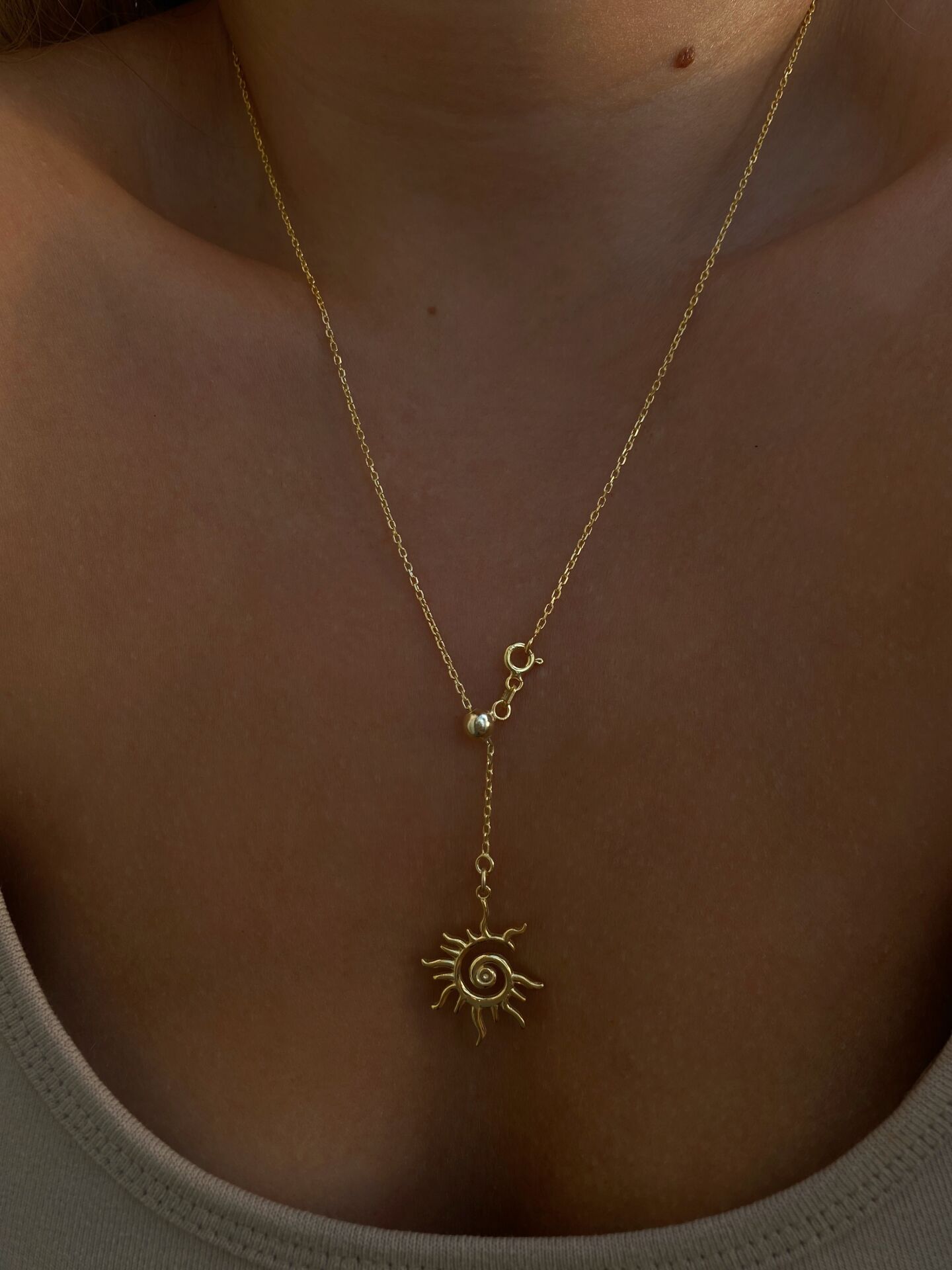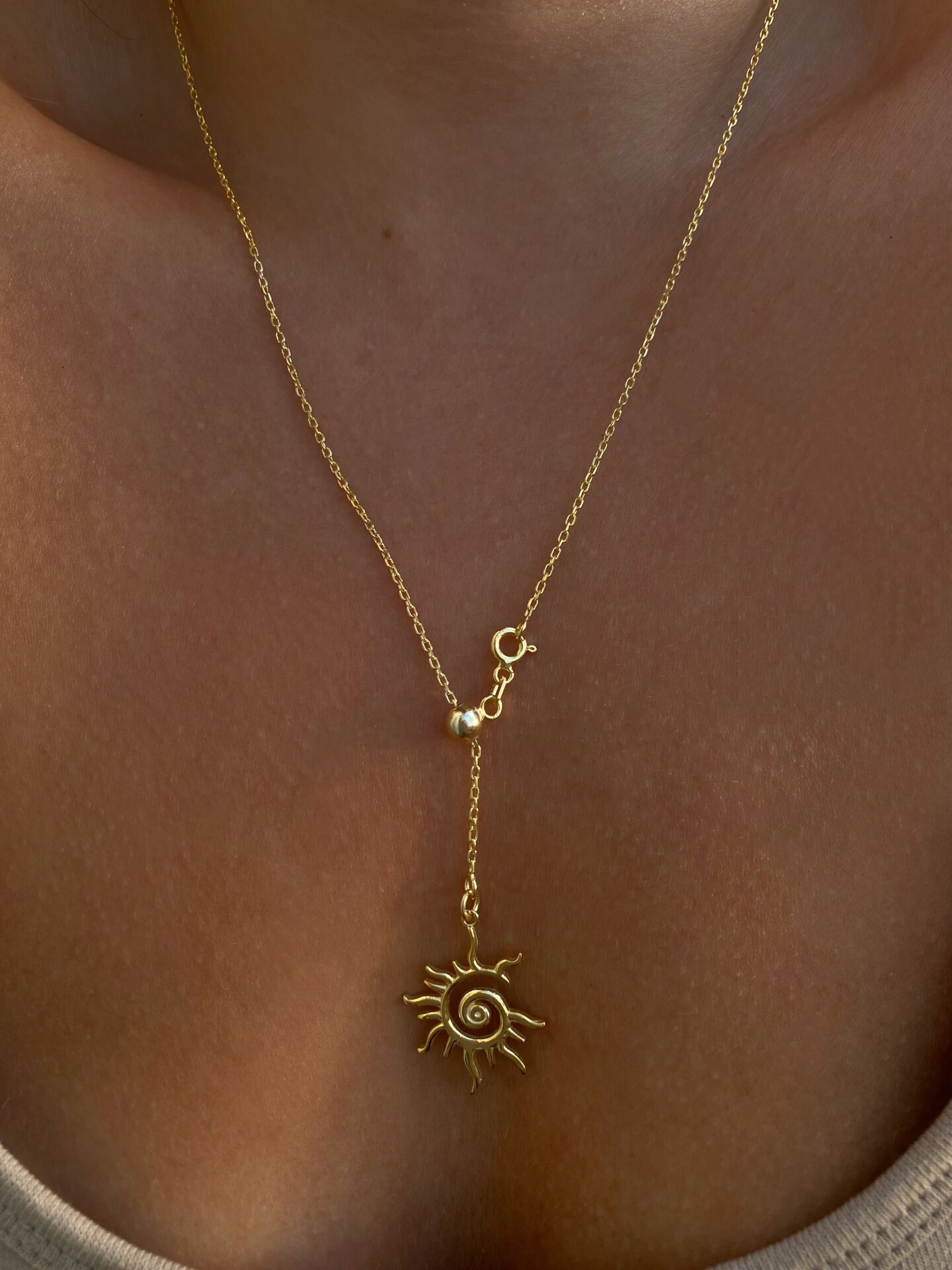 925 Silver | Adjustable Sun Pendant Cable Chain Necklace