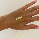 The example in the image features a 16" (40 cm) chain with 7 mm letter size.