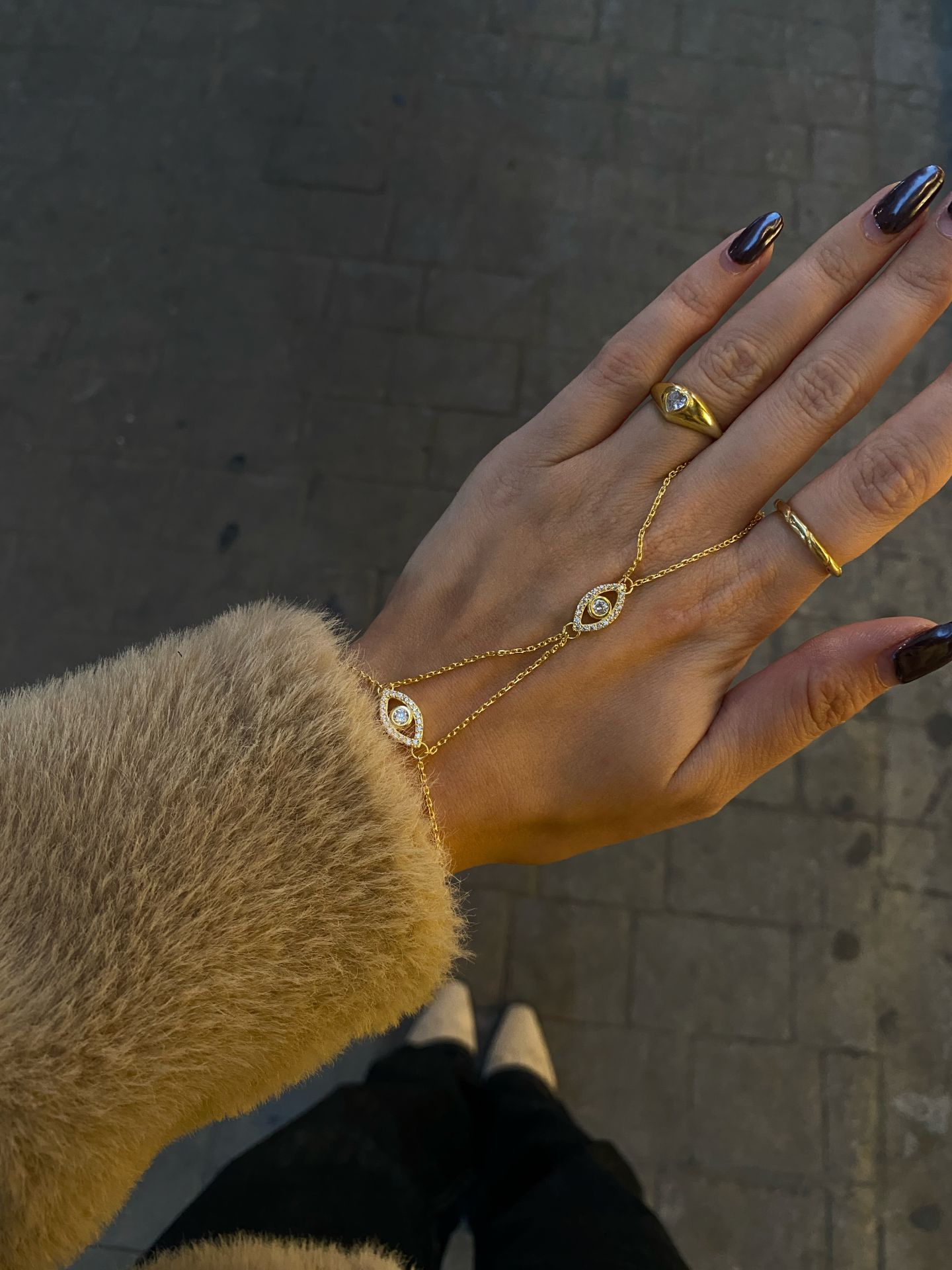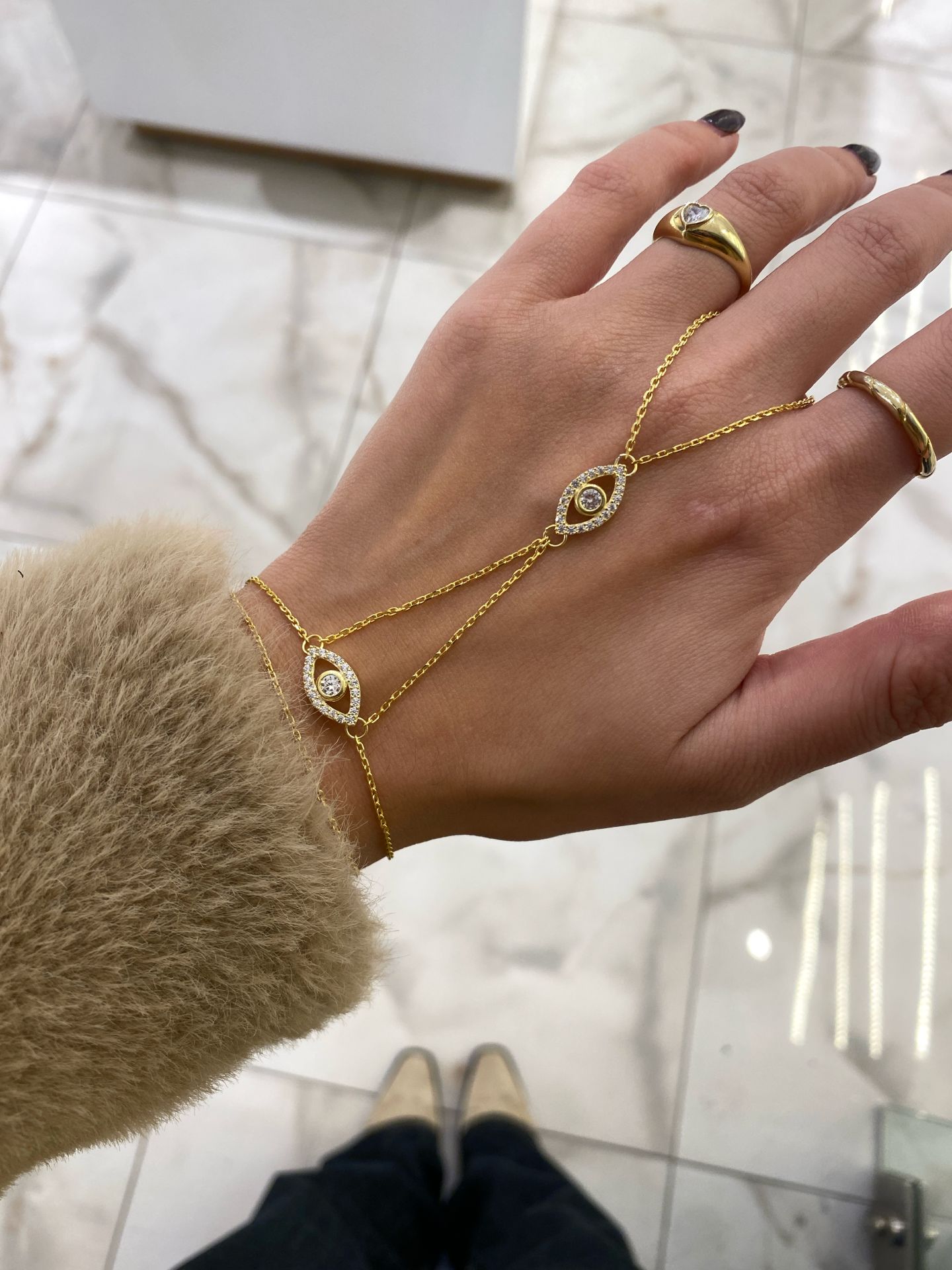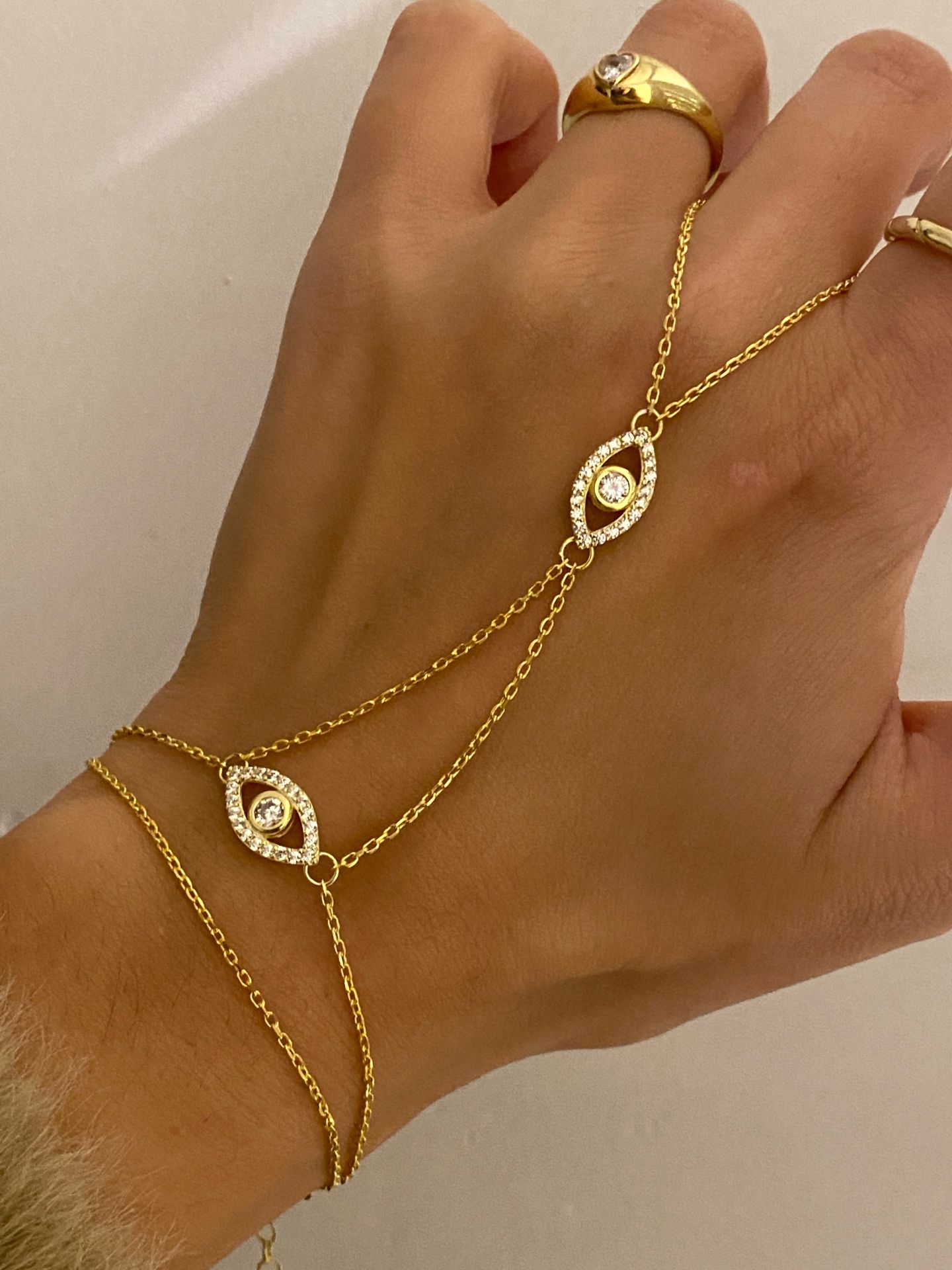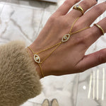 925 Silver | Double Chain Eye Hand Chain with Stone Detail