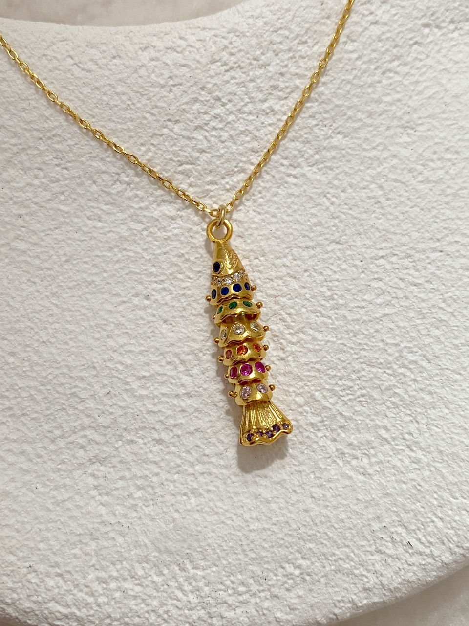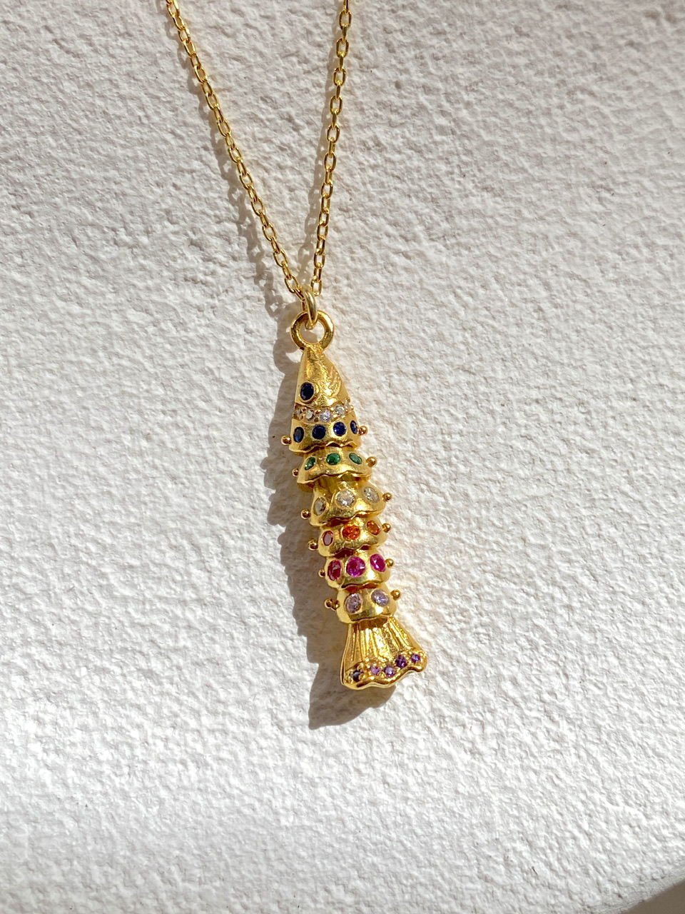 925 Silver | Moving Fish Necklace with Colorful Stone (Luck & Prosperity)