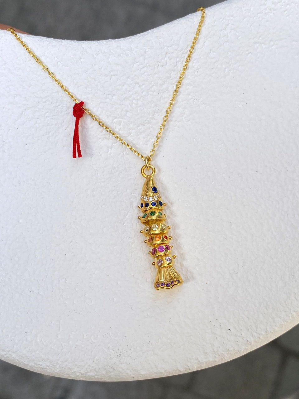 Chain length: 16 Inches (40 cm) The fish figure symbolizes abundance, prosperity, and luck. The red lucky cord on the chain is removable. The fish charm is three-dimensional and movable.