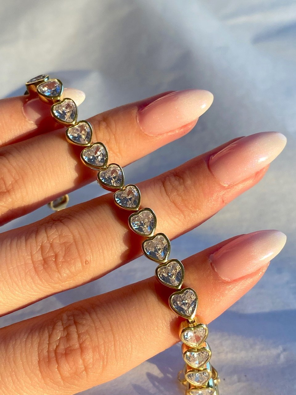 Crafted entirely from three-dimensional white zircon heart charms.